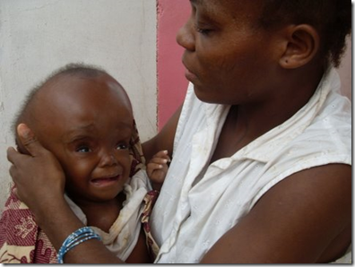 Het meisje is volgens mij helemaal op. Ze heeft heel veel pijn want haar kleine lichaampje draagt het gewicht van haar hoofd. Omdat haar hoofd zo groot is in verhouding met haar lichaam kan ze niet meer lopen. Want allerlei andere lichamelijke en sociale afwijkingen veroorzaakt. Ze heeft ook moeite met ademhalen. Bij het ademhalen worden haar longen en borstkas erg gevuld wat de pijn volgens mij nog een stuk erger maakt. Ze wilt de hele tijd huilen, maar als ze huilt versterkt ze de pijn. In plaats van huilen maakt ze daarom een piepend geluid dat behoorlijk schel en ondraaglijk klinkt. Het is een kreet die ze over en over zo zacht mogelijk maakt, maar die maakt dat je als bijstander elk stukje pijn in haar kleine lichaampje voelt.